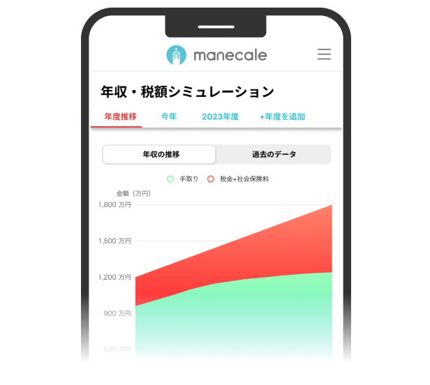 リアルタイムで可能マネカレでは、入力いただいた収入や源泉徴収・レシートの情報をもとにリアルタイムで納税額のシミュレーションを行うことができます。