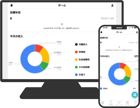 リアルタイムで可能マネカレでは、入力いただいた収入や源泉徴収・レシートの情報をもとにリアルタイムで納税額のシミュレーションを行うことができます。